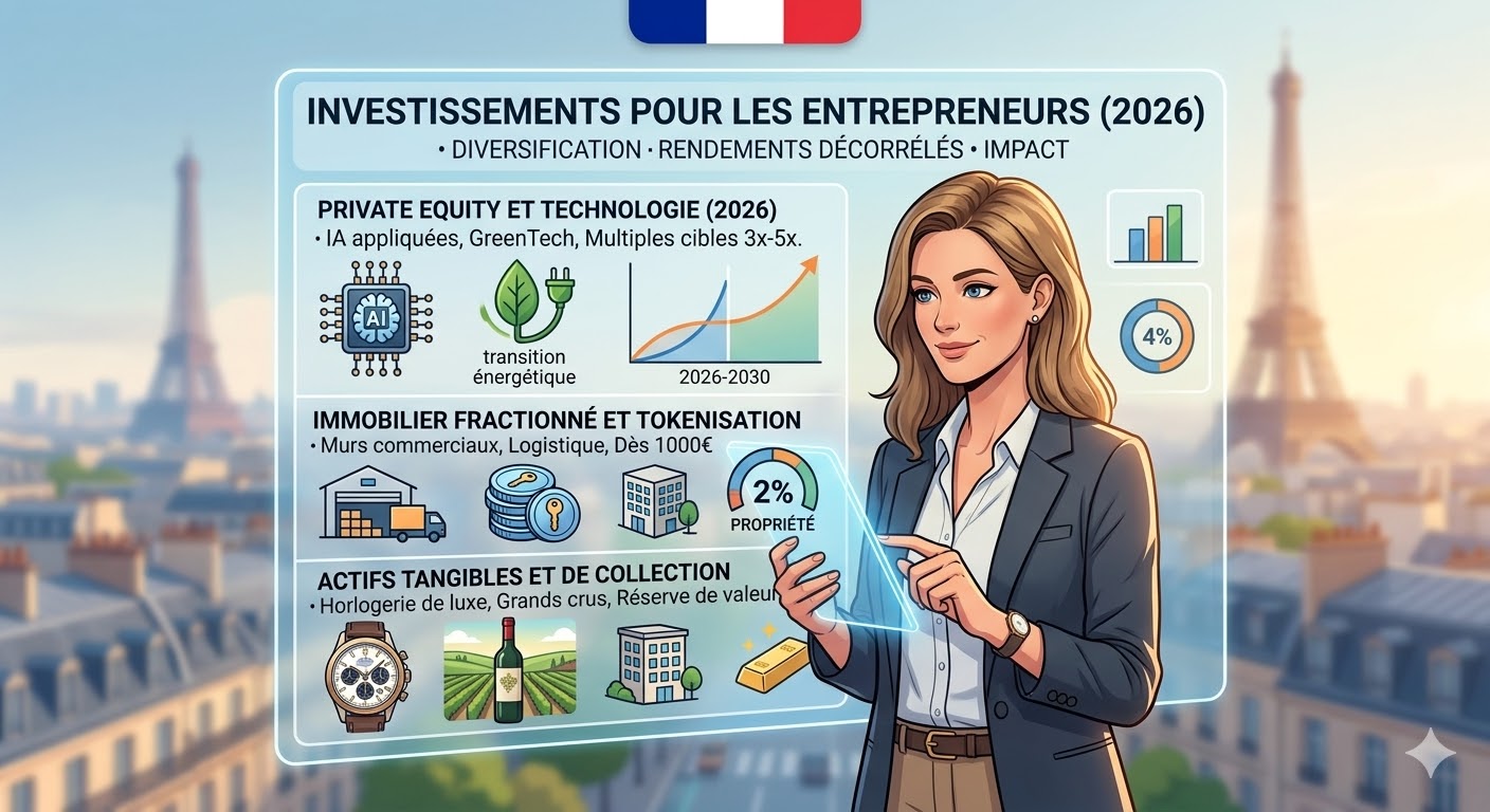 Boîte Réponse Rapide : En 2026, les entrepreneurs se tournent massivement vers le Private Equity spécialisé dans l’Intelligence Artificielle et la transition énergétique. Ils privilégient également les actifs tangibles comme l’horlogerie de luxe et l’immobilier fractionné (tokenisation), qui offrent une protection contre l’inflation et une diversification concrète hors des marchés financiers volatils.